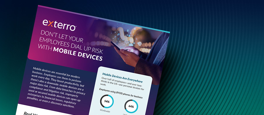 Mobile devices are essential for modern business. Employees use them to perform work every day. They boost productivity, but there’s also a downside: mobile devices are a major data risk. From data breaches to privacy compliance and litigation risk, improperly used or secured mobile devices can open up enterprises to financial losses, regulatory penalties, or even e-discovery sanctions.